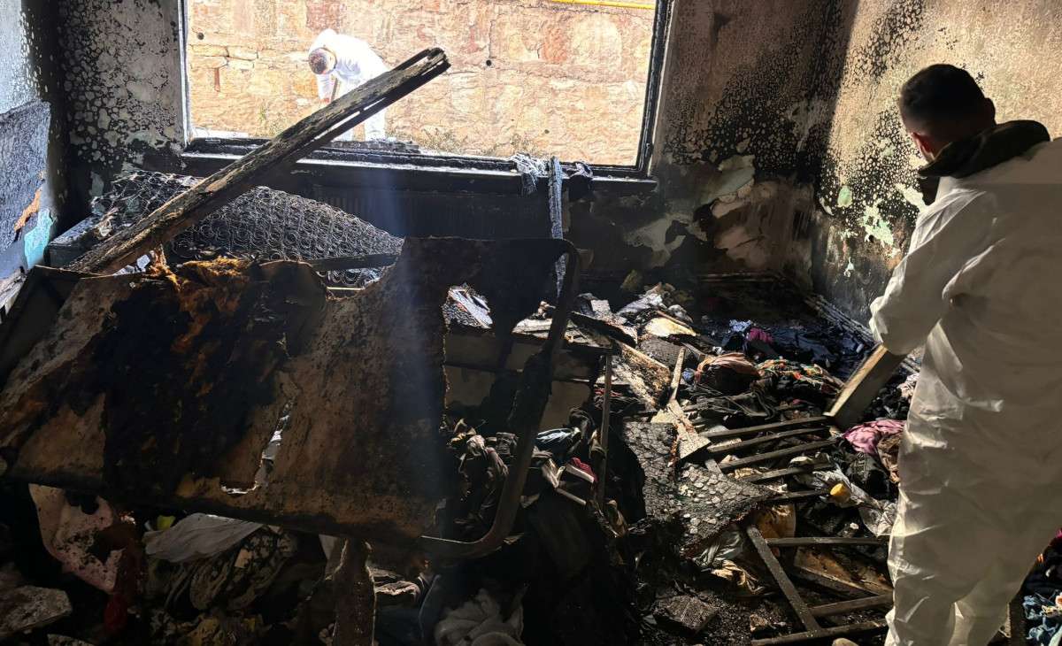 Gölcük Belediyesi ekipleri, Merkez Mahallesi’nde bir binada çıkan yangında büyük hasar gören evde temizlik çalışması yaptı.