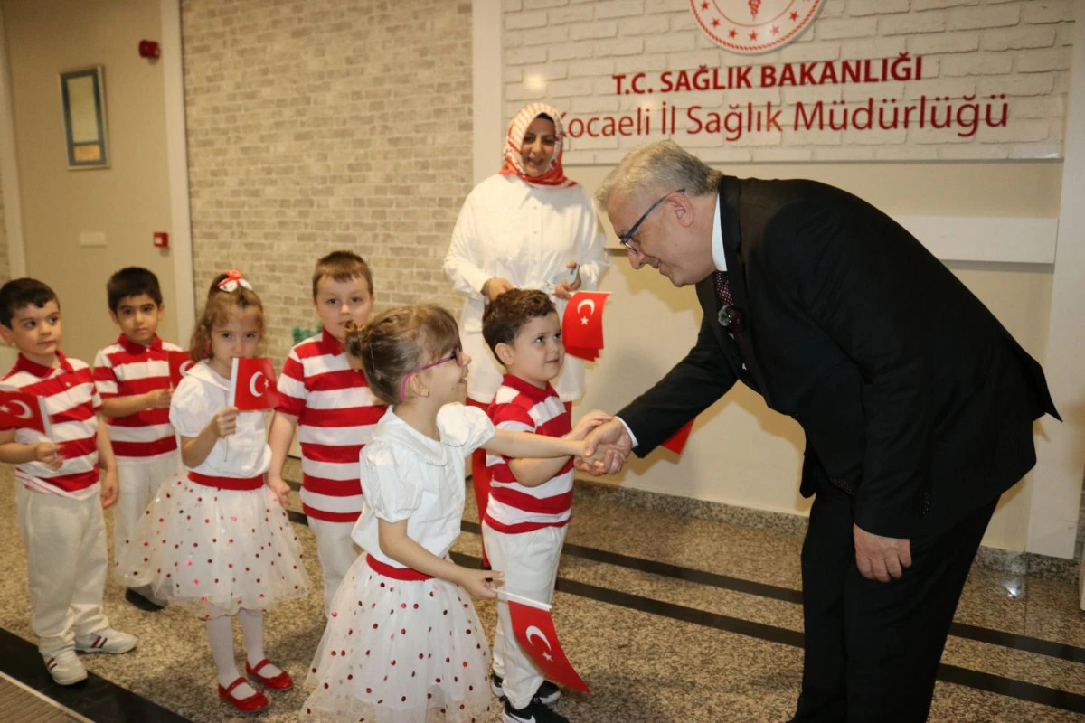 23 Nisan Ulusal Egemenlik ve Çocuk Bayramı etkinlikleri kapsamında, Kocaeli Devlet Hastanesi bünyesinde hizmet veren kreşte eğitim gören çocuklar, İl Sağlık Müdürümüzü makamında ziyaret etti.