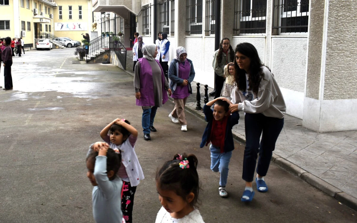 Anadolu Kalkınma Vakfı Kız Mesleki ve Teknik Anadolu Lisesinde gerçekleştirilen tatbikatta öğretmen ve öğrenciler okulun toplanma alanı kabul edilen bahçesine 1 dakika 53 saniye içinde toplanarak binayı tahliye etti.