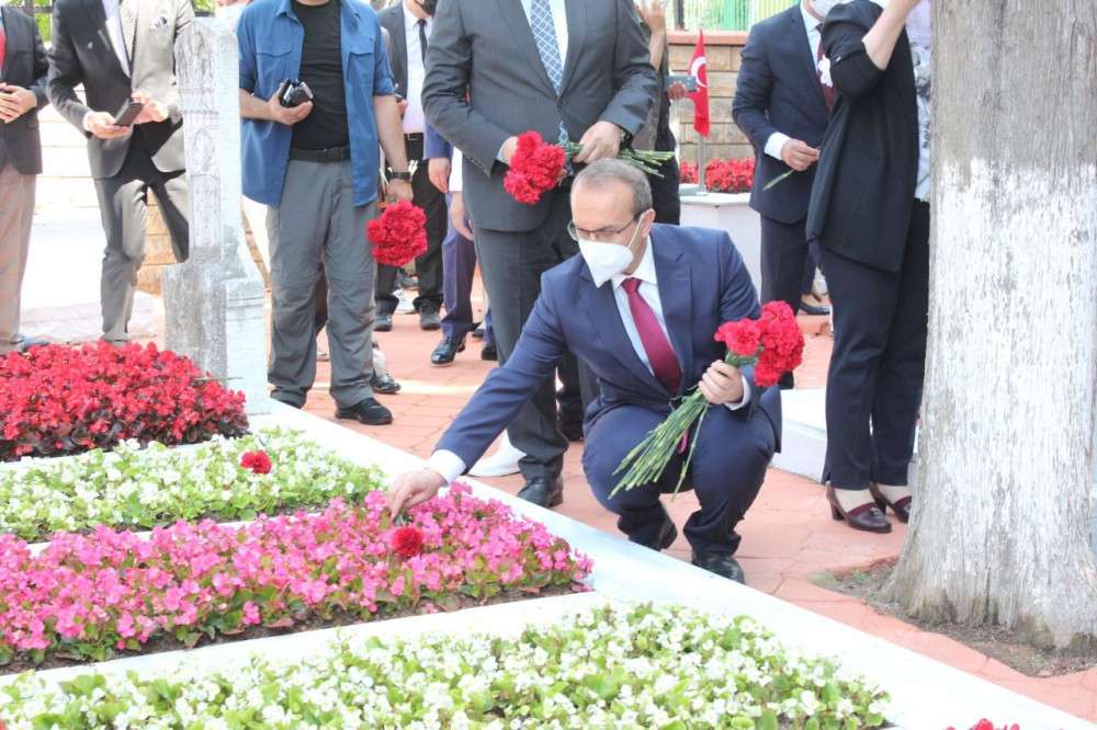 Daha sonra mezarlıkta temizlik hizmeti yapan Büyükşehir Belediyesi personellerine yakınlık gösteren Vali Yavuz işçilere, “Korona olmasaydı sarılırdım. Çok hayırlı bir iş yapıyorsunuz. Tebrik ediyorum” dedi. Mezarlık çıkışı basın mensuplarına seslenen Vali Yavuz, “Son yüzyılda yetiştirdiğimiz en büyük lider Mustafa Kemal Atatürk, şehitlerimiz ve kahraman gazilerimizi anıyoruz. Rabbim mekanlarını cennet eylesin. Türk milleti tarih boyunca ayakta olarak yapılacak her türkü fedakarlık yaptı. Dünyanın son emparyel imparatorluğun sahibi” dedi.